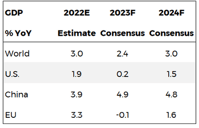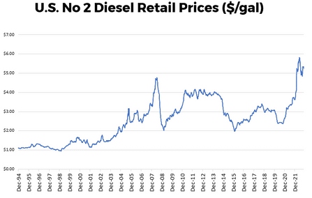 Consensus forecasts for US GDP growth show a dwindling in expectations, dropping from 1.9% in 2022 to 0.2% and 1.5% in 2023 and 2024 respectively. Inflation, on the other hand, has been rampant with consumer prices up 6.5% YoY in December, amongst which US diesel prices, in particular, being up 41% YoY in November after having peaked at a historic high of $5.81/gallon in the third week of June.