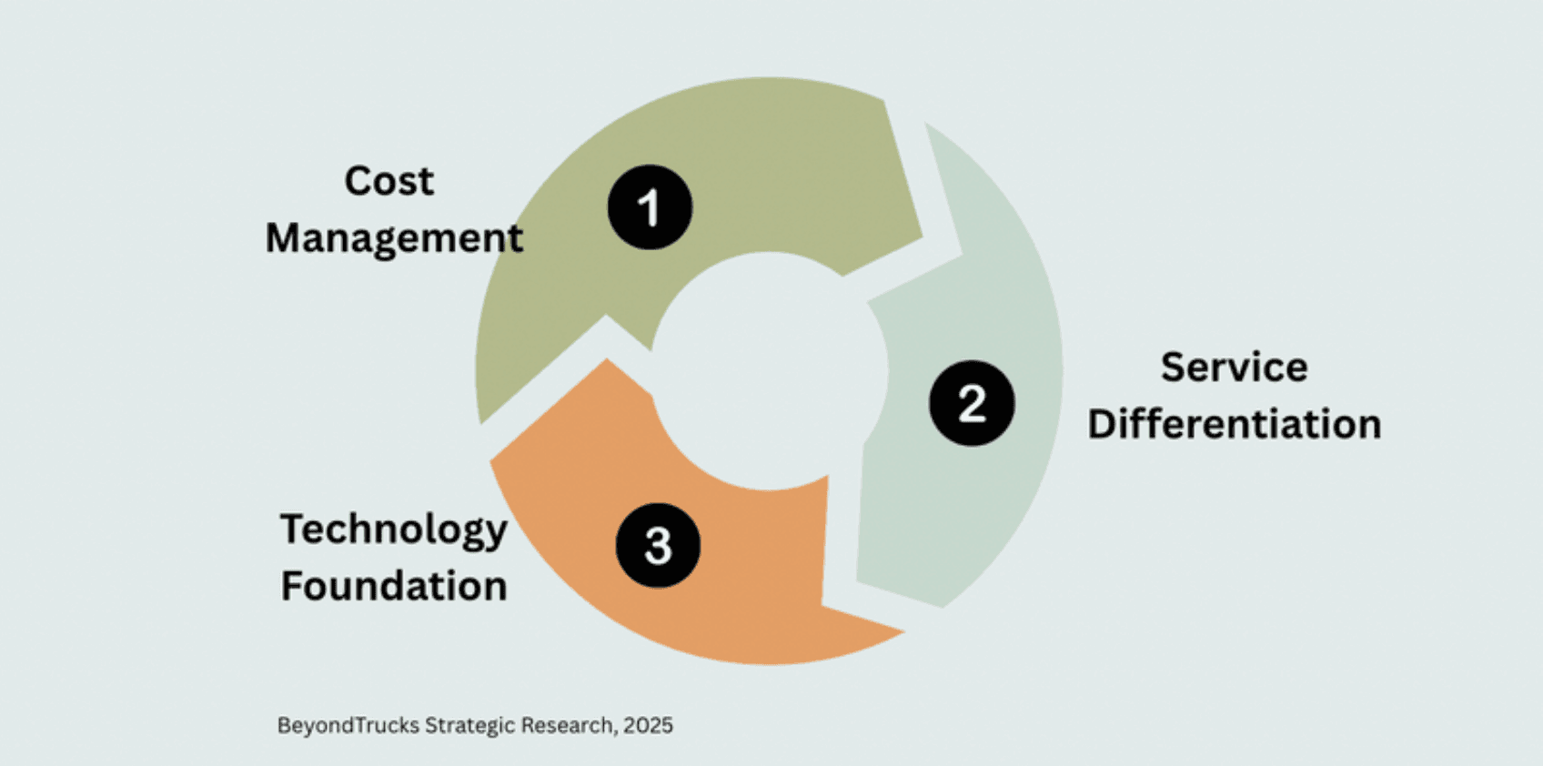 A significant focus of the BeyondTrucks product council work is to define critical skills that will move mid-sized and large transport operations forward. Successfully navigating this changing landscape requires developing distinctive capabilities tailored to a company's strategic position. Our research reveals three capability clusters that will determine competitive advantage: